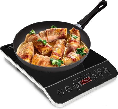 Estufa de inducción portátil 20 niveles de temperatura y potencia, bobina de calentamiento de 6,8 ", estufa de encimera eléctrica con temporizador