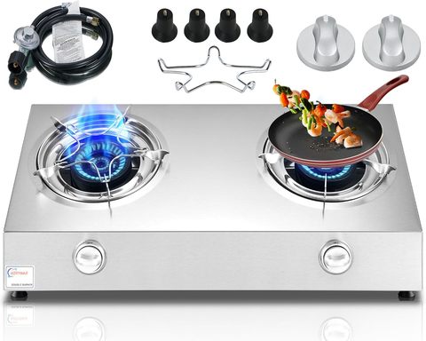 Estufas de gas de 12 ", cocina de propano/gas natural de 2 quemadores, estufa de gas de acero inoxidable de 12 pulgadas, combustible dual superior, fácil de limpiar